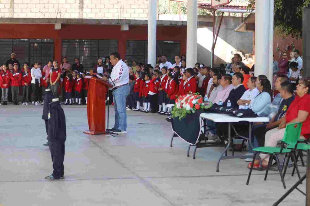 Camerino Z. Mendoza, Ver.- El alcalde Héctor Rodríguez Cortés cumplió su compromiso con la niñez al entregar uniformes escolares gratuitos a alumnos de la Primaria Camerino Z. Mendoza y del Preescolar Tenoch.