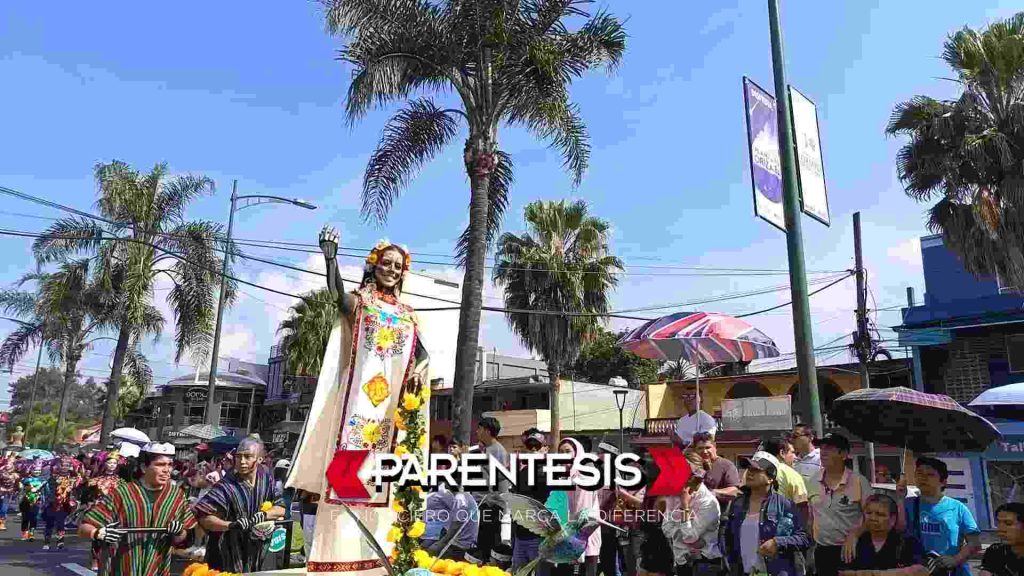 En el Complejo Turístico Casa Vegas arrancó el desfile con una mezcla de rituales prehispánicos y católicos que marcan el retorno temporal de los difuntos al mundo de los vivos.