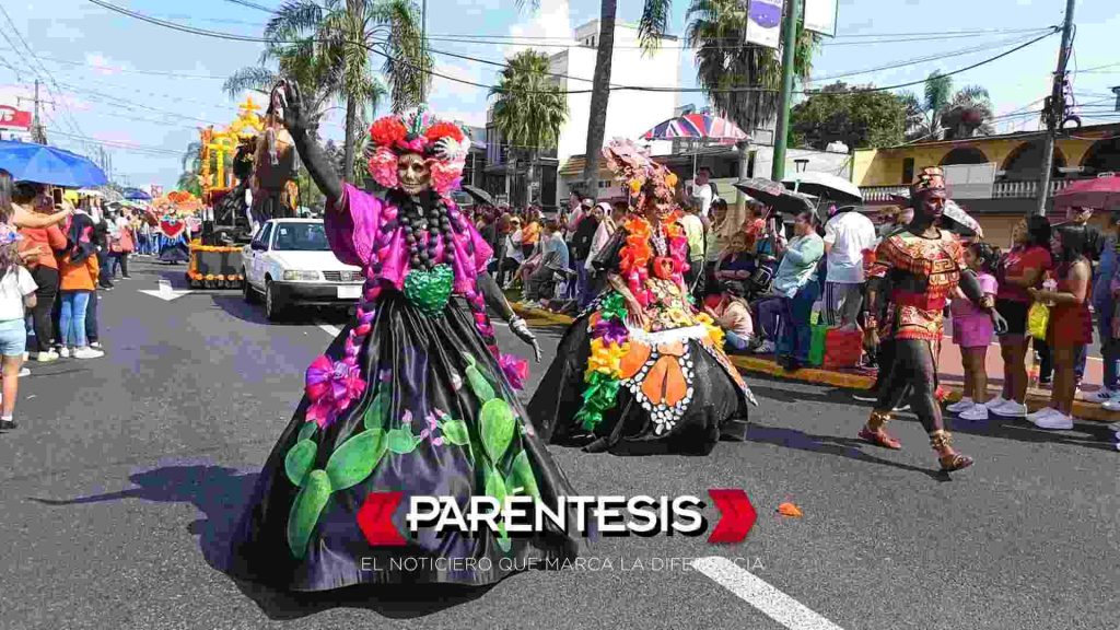 Mas de mil artistas al ritmo de las marchingband, mariachis, danzantes prehispánicos, música de viento, bailarines, catrinas y voluntarios, iban encabezados por el alcalde quien abría a un mar de emociones a flor de piel, de color y alegría para miles de espectadores.