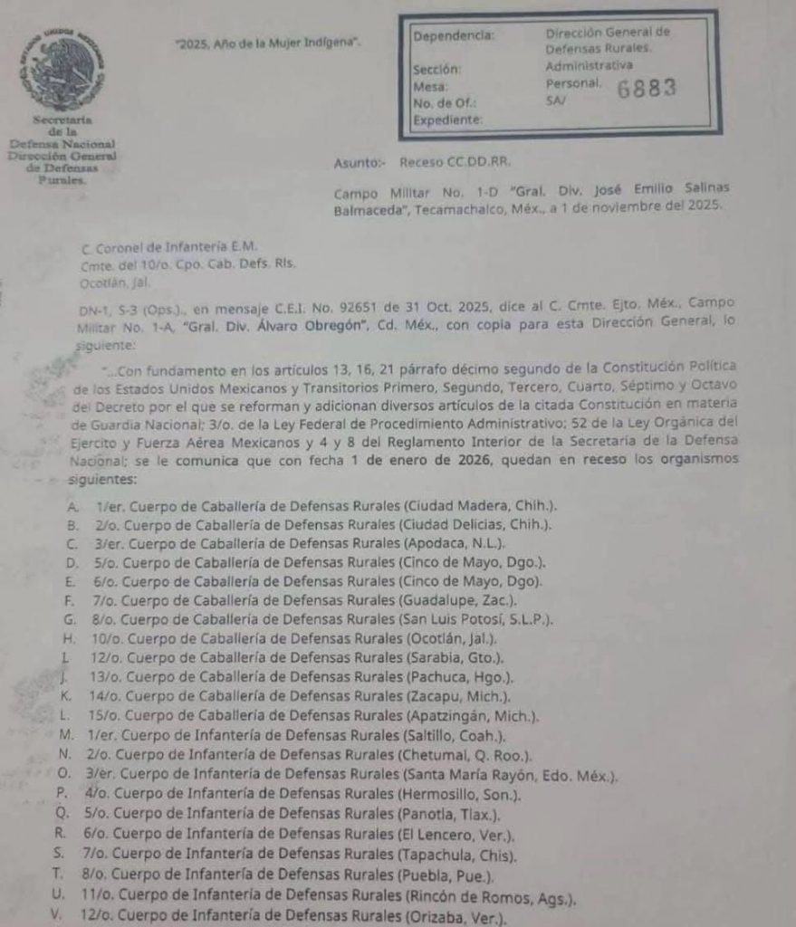 Un comunicado oficial de la Dirección General de Fuerzas Rurales da a conocer la decisión de “entrar en receso”, lo cual en la práctica significa cesarán sus operaciones.