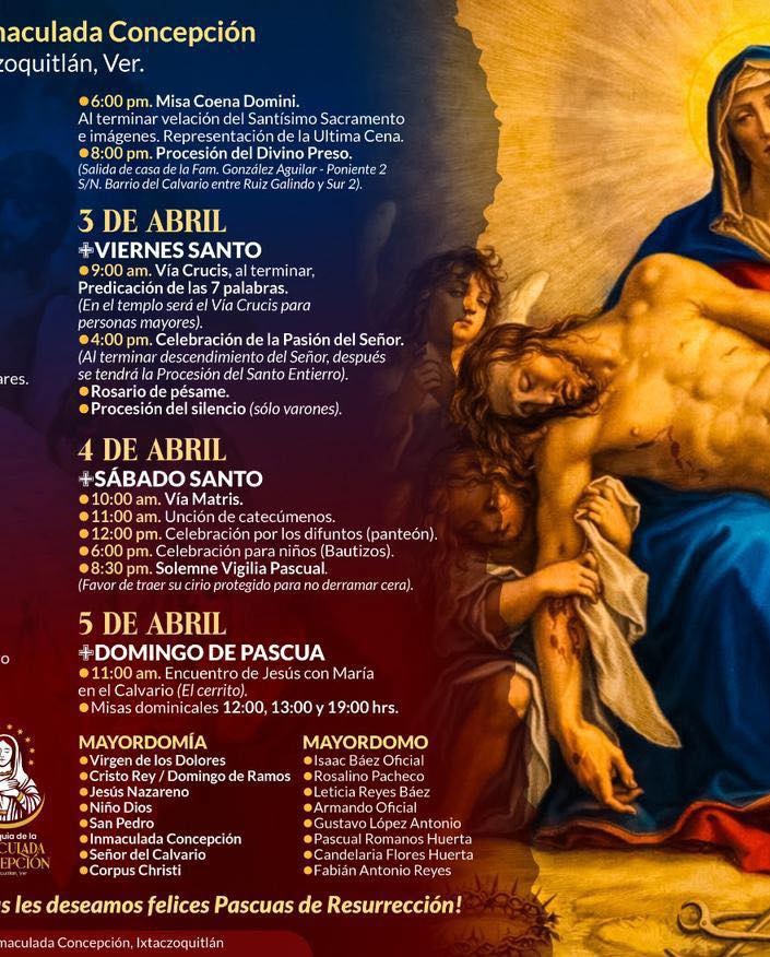 También en la Parroquia de la Inmaculada Concepción en el municipio de Ixtaczoquitlán, se han programado las diferentes actividades.